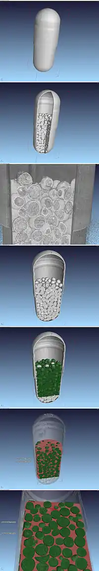 - تتضمن عملية التصنيع غمس قوالب إبرية في محلول الجيلاتين. بعد جفاف غشاء الجيلاتين وتقليمه وإزالته من القالب، فإنه يجمع قسمي الكبسولة (الجسم والغطاء). بما أن الكبسولة تصنع من الجيلاتين وهو من مصدر حيواني، فيجب حفظها بعيداً عن مصادر التلوث الميكروبي المحتمل.