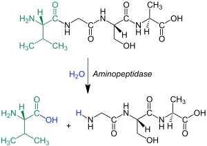 توجد لجميع الأحماض الأمينية محللات بروتين مختلفة خصوصية ، تهاجم الطرف N الأخير في جزيء بروتين وتفصله . (محلل البروتين Arginin ، ومحلل البروتين Leucin ، ..وهكذا.) .كثير من تلك الإنزيمات تكون ثابتة على غشاء الخلية ومرتبطة بها.[1]