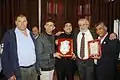 النّجار مع قدورة فارس رئيس جمعية نادي الأسير الفلسطيني و عبد الله زغاري المدير التنفيذي للنادي والأَسير المُحرر عادل حريبات و محافظ الخليل كامل حميد