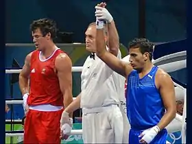 أقصي في دور ربع النهاية في دورة بكين بعد هزيمته أمام الأمريكي ويلدر ب تفضيل تحكيمي بعد نهاية النزال بالتعادل 10 ل 10.