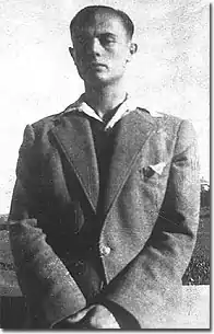 كان على رأس المسيرة التي نظمت في الجزائر العاصمة يوم أول ماي 1945[1]، المسيرة التي كان قد دعا إليها حزب الشعب الجزائري. كان ذلك اليوم يوم مقتله برصاص الشرطة الفرنسية، أطلق عليه الرصاص بعد رفضه تسليم العلم الذي كان يرفعه متقدما المسيرة في منتصف شارع العربي بن مهيدي (سابقا rue d'Isly). هذه الراية التي صنعها بيديه وكان العديد من الجزائريين يرونها في العلن لأول مرة هي ليومنا هذا العلم والشعار الرسمي للجزائر.