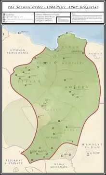 في زعامة محمد المهدي السنوسي (1859 م - 1902 م) وصلت السنوسية إلى ذروة قوتها وانتشارها، ومما عمله محمد المهدي السنوسي، في سبيل التمكن من الإشراف المباشر على هذه الامبراطورية الواسعة، نقل مركز السنوسية من الجغبوب إلى الكفرة (1895). التي أصبحت "المركز التجاري الرئيسي" الذي تلتقي فيه القوافل من جميع أنحاء أفريقيا الوسطى والشمالية، وكان هؤلاء التجار وقوافلهم سبيلاً لنشر الإسلام في الجهات النائية، ومركز الإدارة السنوسية كان في "التاج" ومنها وصلت الدعوة السنوسية، حاملة الإسلام إلى بلاد كور وتبيستي وبركو واندي ودارفور ووادي وكانم وتشاد وأزقر وبغرمي. كما أسس بها مكتبة الكفرة.
