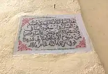 - هَذَا ضَرِيحُ العَلاَّمَةِ سِيدِي مُحَمَّدْ بَنُ الحَسَنِ بْنُ السّعُودِ البَنّانِي، وُلَدَ عَام 1133 هجرية وعَاشَ عَالِماً وشَيْخاً مِنْ شُيٌوخِ الإِسْلاَمِ وتُوفِيًّ رَحِمَهُ اللَّه عَامْ 1141 هجرية.[1]