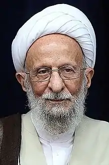 آية الله الشيخ محمد تقي مصباح اليزدي (1934 - 2021.[3][4][5] فيلسوف وعالم دين إسلامي شيعي، مؤسس مؤسسة الإمام الخميني للتعليم والبحث العلمي، عضو مجلس خبراء القيادة في إيران وأحد أبرز علماء الدين الإيرانيين من تلامذة المفسر والفيلسوف الإسلامي محمد حسين الطباطبائي، وعُدَّ من أشهر الفلاسفة الشيعة خلال حياته.