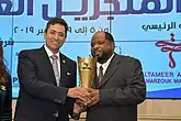 محمد توفيق بلو يتسلم جائزة أوسكار الإبداع العربي لعام 2019م من اللواء د. سامح لطفي رئيس الاتحاد الدولي للمنجزين العرب والأفارقة 05 ديسمبر 2019م