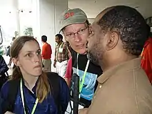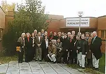 محمد توفيق بلو عند مدخل معهد مينيابوليس التابع للجمعية الوطنية للمكفوفين بولاية مينيسوتا الأمريكية سبتمبر 1996