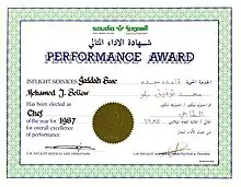 شهادة الأداء المثالي - مدرب المضيفين - الخطوط السعودية 1991م