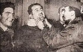 أعضاء اللجنة العسكرية البعثية يحتفلون بنجاح الانقلاب العسكري، من اليمين: صلاح جديد، محمد عمران، سليم حاطوم