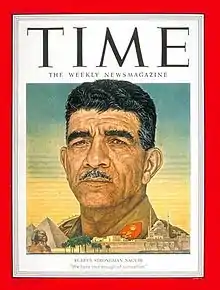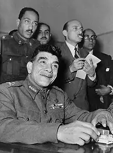 الرئيس اللواء محمد بك نجيب يوسف قطب القشلان (19 فبراير 1901 - 28 أغسطس 1984) سياسي وعسكري مصري، أول رئيس لجمهورية مصر بعد إنهاء الملكية وإعلان الجمهورية في (18 يونيو 1953)، كما يعد قائد ثورة 23 يوليو 1952 التي انتهت بعزل الملك فاروق ورحيله عن مصر.[7] تولى منصب رئيس الوزراء في مصر خلال الفترة من (8 مارس 1954 ـ 18 أبريل 1954)،[8][9] وتولى أيضاً منصب القائد العام للقوات المسلحة المصرية ثم وزير الحربية عام 1952.[10][11]