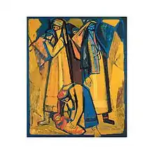 محمود حماد فنان تشكيلي سوري - (1923 - 1988م) محمود بن أمين حماد، فنان متعدد المواهب. كان مصوراً وحفاراً ومصمم ميداليات ونصب معمارية. ولد في دمشق وتوفي فيها، ظهرت موهبته الفنية منذ حداثته؛ درس المرحلة الابتدائية في المدرسة الإيطالية بدمشق، والمرحلة الثانوية في مدرسة التجهيز الأولى (ثانوية جودة الهاشمي)، وكان يلقى تشجيعاً من المشرفين على تدريس الفن في كل مرحلة من المرحلتين، فتميز بين التلاميذ بإجادة الرسم والتلوين، كما تفوّق في المقررات العلمية والأدبية وأتقن الإيطالية والفرنسية إلى جانب العربية.