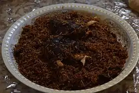 ![]() صورة لوجبة المحموص مقدمة مع الدجاج. | |