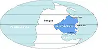 موقع المحيط تيثس القديم قبل حوالي 280 مليون سنة.