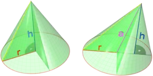 - حيث a هو مساحة المقطع، و k هو بعد المقطع عن رأس المخروط.