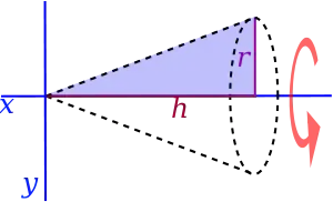 - وقد تم اثباته باعتبار المخروط الدائري القائم مجسم دوراني ينتج عن تدوير الدالة