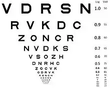 |CitationClass=تم تجاهله (مساعدة) - "Home vision tests: MedlinePlus Medical Encyclopedia". www.nlm.nih.gov. مؤرشف من الأصل في 5 يوليو 2016. اطلع عليه بتاريخ 09 مايو 2015. الوسيط