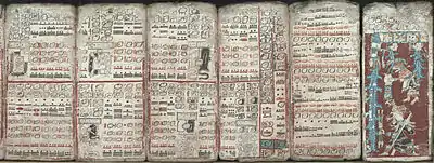 طويت المخطوطة، المُؤلفة من 39 ورقة، والتي تحمل نقوشاً على كلا الجانبين ويبلغ طولها 358 سنتيمتراً، في الأصل على طريقة تشبه الأكورديون.[1] تُسمَّى مادة الكتابة المكسوة بالطباشير أماتْلْ، وهي مادة تشبه الورق، مصنوعة من ألياف شجرة التين بعد أن يُنقع ويُضرب. [1]