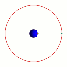 بالنسبة للأرض لا بد من توصيل قمر صناعي إلى مدار على أرتفاع 36.000 كيلومتر فتكون دورته 24 ساعة (بدلا من نحو 90 دقيقة إذا كان المدار على ارتفاع 500 كيلومتر فقط).