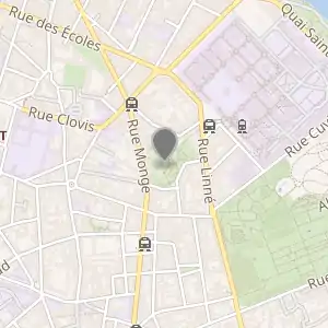 تم اكتشاف الجزء الشمالي في عام 1869، أما الجزء الجنوبي فكان أثناء التنقيب بين أعوام 1883-1885، جميع المستعادة في 1917-1918" - وسجل عنوانه على مدخل رقم 49، شارع مونج (Monge).