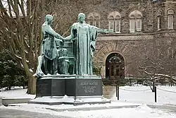 يوجد في حرم جامعة كولومبيا على أدراج المكتبة المنخفضة تمثال نحاسي لألما ماتر نحته دانيال تشستر فرانتش وفي جامعة إلينوي في إربانا-تشامبين هناك تمثال حجري لألما ماتر. Alma Mater Studiorum ("الأم المرضعة للدراسات") هو أيضا شعار جامعة بولونيا أقدم جامعة أوروبية تأسست في عام 1088م.[6]