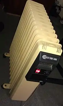 تعد المدفأة الزيتية، المعروفة أيضًا باسم الصوبة الزيتية أو المدفأة المملوءة بالزيت، أو المشعاع المملوء بالزيت، أو الصوبة العمودية، أحد الأشكال الشائعة لسخان الحمل الحراري المستخدم في التدفئة المنزلية. على الرغم من أنه مملوء بالزيت، فإنه يتم تسخينه كهربائيًا ولا يتضمن حرق أي وقود زيت؛ يتم استخدام الزيت كخزان حراري لانهائي (مؤقت)، وليس كوقود يحرق.[1] [2] [3]