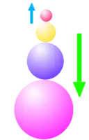 من الممكن إظهار المبدأ وإجراء التجربة بشكل أكثر بساطة من خلال كرتين فقط ككرة سلة وكرة تنس. يقوم مشرف التجربة بوضع كرة التنس فوق كرة السلة بتوازن تام واسقاط الكرتين على الأرض. نلاحظ في التجربة ارتداد كرة التنس عدة كرات للارتفاع التي كانت عليه.[4]