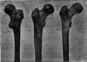 ![]() عظام فخذ بشرية ، مبيّن عليها المدور الثالث. | |