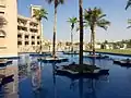 إن مسافة 5.4 كم من الممرات المائية تصل المناطق مختلفة من المنتجع، والتاكسي المائي (العبرة (قارب)) التي تسمح للنزلاء السفر على طولها إلى جميع أنحاء المنتجع. يكون الممر المائي في تدفق مستمر مع مياه البحر التي يتم ضخها فيه في نهاية واحدة من المنتجع وتتدفق عائدة إلى البحر في الطرف الآخر. كما أن الممرات المائية هي أيضاً ملاذ للسلاحف والتي تهدف إلى إعادة تأهيل السلاحف المصابة.
