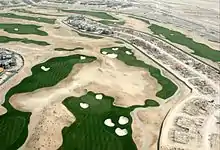 ملاعب الجولف في طور الإنشاء وترى بجانبها منشئات إقامة تابعة للمجمع الرياضي في سنة 2008.