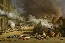 وجرى ذبح الخدم - بمن فيهم العاملون في المطبخ - في مهرجان دموي مجنون. وأنشد أهل مرسيليا نشيد المرسييز بمصاحبة عزف على البيانو القيثاري (الهاربسكورد) الخاص بالملكة، واستراحت العاهرات اللائي اعتراهن التعب فوق سرير الملكة، وأحرق المتمردون الأثاث وأراقوا النبيذ، وبالقرب من ساحة الفروسية أشعل الجمهور السعيد النار في تسعمائة مبنى وأطلقوا النار على رجال الإطفاء الذين أتوا لإخماد النيران. واستعرض بعض المنتصرين بأعلامهم التي صنعوها من السترات الحمراء لأفراد الحرس السويسري المقتول - وبذلك كانت هذه أول حالة معروفة لاستخدام العلم الأحمر رمزاً للثورة .