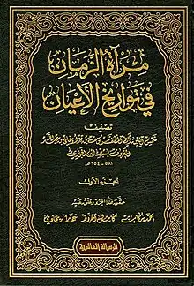 مرآة الزمان في تاريخ الأعيان: وقد ورد اسمه أيضًا: (مرآة الزمان في وفيات الفضلاء والأعيان)، كتاب من تأليف أبي المظفر شمس الدين يوسف بن الأمير حسام الدين قِزُغْلِي، المعروف بسبط ابن الجوزي. ولد ونشأ ببغداد، ورباه جده أبو الفرج ابن الجوزي، وانتقل إلى دمشق فاستوطنها، وتوفي فيها سنة 654هـ.