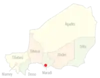مرادي[3] ثالث مدن النيجر سكانا والمركز الإداري لمنطقة مرادي. تقع على الطريق المعبد الذي يعد محور التواصل بين شرق النيجر (دفا) وغربها (نيامي). ويتجه طريق آخر جنوبا ليربطها بمدينة كانو حاضرة شمال نيجيريا.