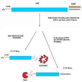 يَنشط هذا المسار حين يكون بروتين Ski7 متوفرا في الخلية. يُعتقد أن البروتين Ski7 يرتبط بالموقع A الفارغ من الريبوسوم، ويسمح له هذا الارتباط بفصل وإخراج الرنا الرسول العالق الذي لا يحتوي كودون توقف مما يحرر الريبوسوم ويسمح له بترجمة نسخ أخرى. بعد الانفصال يكون بروتين Ski7 مرتبطا بالرنا الرسول وهذا الارتباط هو الإشارة التي تجعل الإكسوسوم في العصارة الخلوية يستهدف الرنا الرسول. يقوم مركب Ski7-إكسوسوم بإزالة ذيل عديد الأدينين بسرعة وهذا يسمح للإكسوسوم بتفكيك الرنا الرسول من الاتجاه 3' إلى 5'.[30][31]