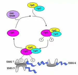 |CitationClass=تم تجاهله (مساعدة) - Yamashita A, Kashima I, Ohno S (December 2005). "The role of SMG-1 in nonsense-mediated mRNA decay". Biochimica et Biophysica Acta. 1754 (1–2): 305–15. doi:10.1016/j.bbapap.2005.10.002. PMID 16289965. الوسيط