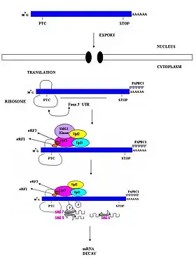 |CitationClass=تم تجاهله (مساعدة) - Conti E, Izaurralde E (June 2005). "Nonsense-mediated mRNA decay: molecular insights and mechanistic variations across species". Current Opinion in Cell Biology. 17 (3): 316–25. doi:10.1016/j.ceb.2005.04.005. PMID 15901503. الوسيط