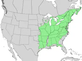 موطنه شرق أمريكا الشمالية من جنوب شرق كندا إلى شرق الولايات المتحدة وصولاً إلى شمال فلوريدا.