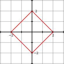 تصف مربعا ضلعه يساوي 2 ويتقاطع قطراه في مركز المَعلم. المساحة تساوي مربع القطر على 2