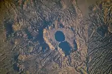وفي النهاية انقسمت المرتفعات الإثيوبية بفعل الأخدود الإفريقي العظيم نظرًا لتمزق قشرة القارة الإفريقية. وقد نتج عن هذا الصدع بداية تكون سلسلة تضم أكثر من بركان درعي البازلتية القلوية منذ حوالي 30-31 مليون سنة.[2]