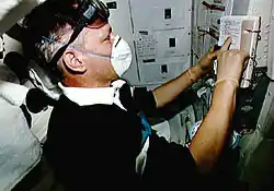 أحد المتخصصين الفضائيين يقوم باعداد التجهيزات