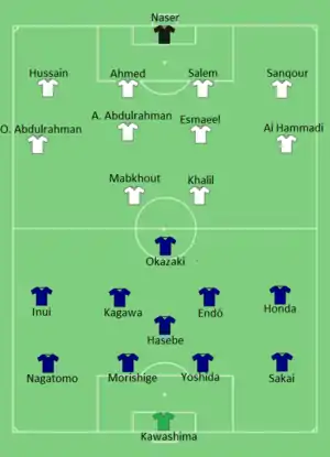 |CitationClass=تم تجاهله (مساعدة); الوسيط|firstالأول=يفتقد|lastالأول=في الأول (مساعدة); تحقق من التاريخ في:|تاريخ أرشيف=(مساعدة) - "South Korea beat Iraq 2–0 to reach Asian Cup final". رويترز. 26 يناير 2015. مؤرشف من الأصل في 01 يوليو 2015. اطلع عليه بتاريخ 26 يناير 2015. الوسيط