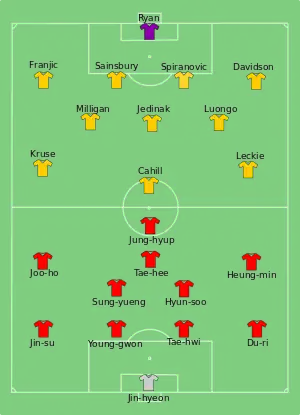 |CitationClass=تم تجاهله (مساعدة); الوسيط|firstالأول=يفتقد|lastالأول=في الأول (مساعدة); تحقق من التاريخ في:|تاريخ أرشيف=(مساعدة) - Larkin, Steve (31 يناير 2015). "Australia down South Korea, win Asian Cup". Yahoo! Australia. Australian Associated Press. مؤرشف من الأصل في 01 فبراير 2015. اطلع عليه بتاريخ 31 يناير 2015. الوسيط