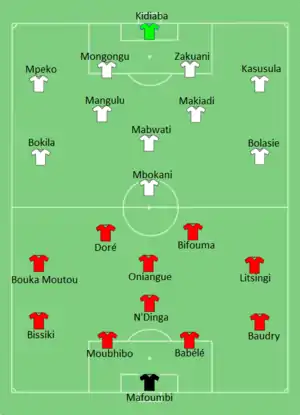 جمهورية الكونغو الديمقراطية. - "Match report: Congo 2–4 DR Congo" (PDF). الاتحاد الأفريقي لكرة القدم. 31 يناير 2015. اطلع عليه بتاريخ 31 يناير 2015. الوسيط