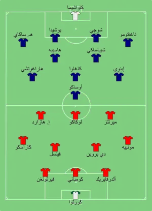 |CitationClass=تم تجاهله (مساعدة) - "Tactical Line-up – Round of 16 – Belgium v Japan" (PDF). FIFA.com. Fédération Internationale de Football Association. 2 July 2018. مؤرشف من الأصل (PDF) في 10 سبتمبر 2018. اطلع عليه بتاريخ 02 يوليو 2018. الوسيط