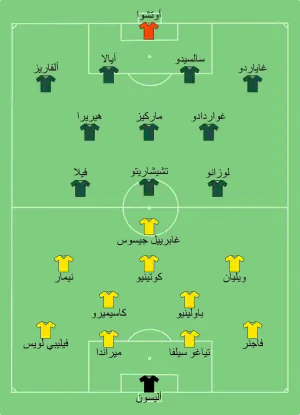 |CitationClass=تم تجاهله (مساعدة) - "Tactical Line-up – Quarter-final – Brazil v Belgium" (PDF). FIFA.com. Fédération Internationale de Football Association. 6 July 2018. مؤرشف من الأصل (PDF) في 10 سبتمبر 2018. اطلع عليه بتاريخ 06 يوليو 2018. الوسيط