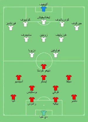 |CitationClass=تم تجاهله (مساعدة) - "Tactical Line-up – Round of 16 – Spain v Russia" (PDF). FIFA.com. الاتحاد الدولي لكرة القدم. 1 July 2018. مؤرشف من الأصل (PDF) في 10 سبتمبر 2018. اطلع عليه بتاريخ 01 يوليو 2018. الوسيط