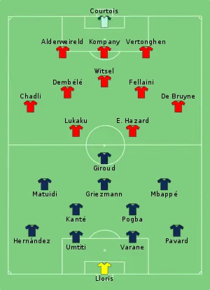 |CitationClass=تم تجاهله (مساعدة) - "Tactical Line-up – Semi-final – France v Belgium" (PDF). FIFA.com. Fédération Internationale de Football Association. 10 July 2018. مؤرشف من الأصل (PDF) في 10 سبتمبر 2018. اطلع عليه بتاريخ 10 يوليو 2018. الوسيط
