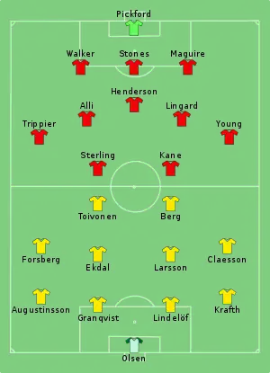 |CitationClass=تم تجاهله (مساعدة) - "Tactical Line-up – Quarter-final – Sweden v England" (PDF). FIFA.com. Fédération Internationale de Football Association. 7 July 2018. مؤرشف من الأصل (PDF) في 10 سبتمبر 2018. اطلع عليه بتاريخ 07 يوليو 2018. الوسيط
