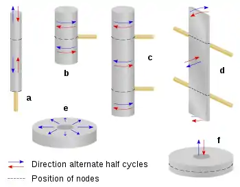 ما يكون ممكنًا للجزء الميكانيكي أن يهتز في عددٍ من الوسائط المختلفة، وبالرغم من ذلك فإن التصميم سوف يرتكز على وسيط اهتزازي معين ويقوم المصمم بإجراء محاولاتٍ لتركيز الرنين في هذا الوسيط. وكما يُستخدم الوسيط الطولي المستقيم، يتم استخدام بعض الوسائط الأخرى ومن ضمنها وسيط الثني والوسيط الحدرجي والوسيط الشعاعي ووسيط رأس الطبلة الدائرية.[38][39]