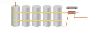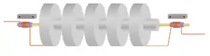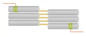 وتنحشر المادة الكهربائية الانضغاطية بالطول في نوعٍ آخر من المُبدِّلات الكهربائية الانضغاطية، وتكون في الغالب بداخل الرنان نفسه. ويُعد هذا النوع صالحًا لوسائط الاهتزاز الحدرجية، ويُسمى مُبدِّل حدرجي.[30]