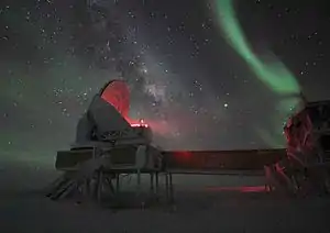 J. Ruhl; et al. (2004). "The South Pole Telescope". SPIE. 5498: 11–29. arXiv:astro-ph/0411122. Bibcode:2004SPIE.5498...11R. doi:10.1117/12.552473. الوسيط