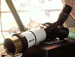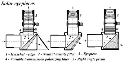 - منظار شمسي خاص helioscope به شرائح زجاجية وموشورات تهديء الأشعة الشمسية.